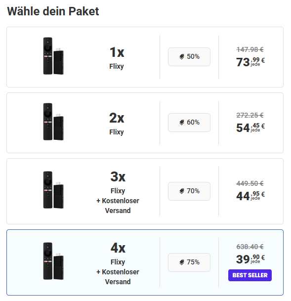 Flixy ist nicht einfach nur ein weiterer Fernseh-Stick. Er ist eine komplette Unterhaltungslösung, die dir Zugang zu einer riesigen Inhaltsbibliothek verschafft, ohne dich an monatliche Gebühren zu binden.